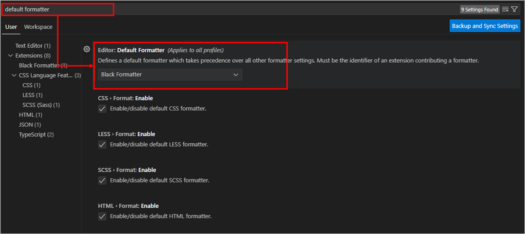 VSCode에서 [Ctrl + ,]를 통해 세팅을 열고 'Default Formatter'를 검색해 'Black Formatter'로 설정한다.